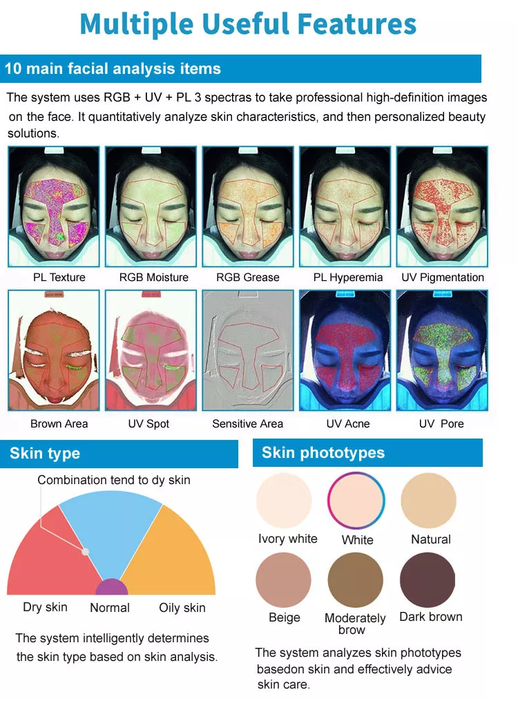 The new skin decoder is beautiful and high-grade. It uses a clear imported probe to accurately analyze the skin's